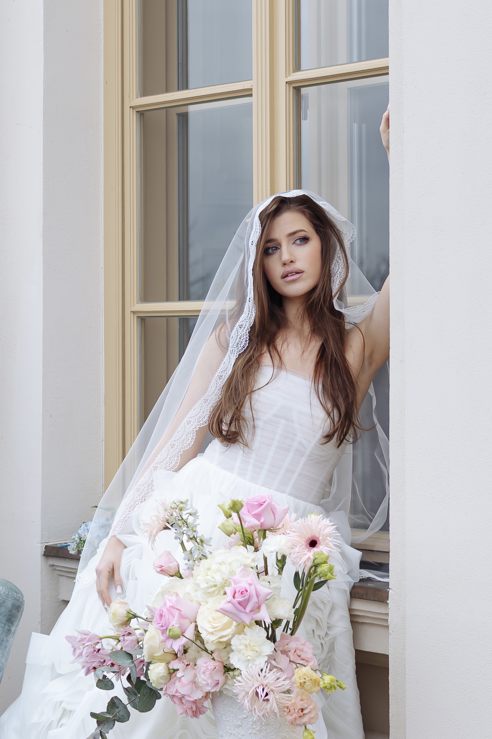Cu o lungime de 75 cm, voalul cade ușor și natural, completând armonios coafura și rochia de mireasă, fără a încărca ținuta.